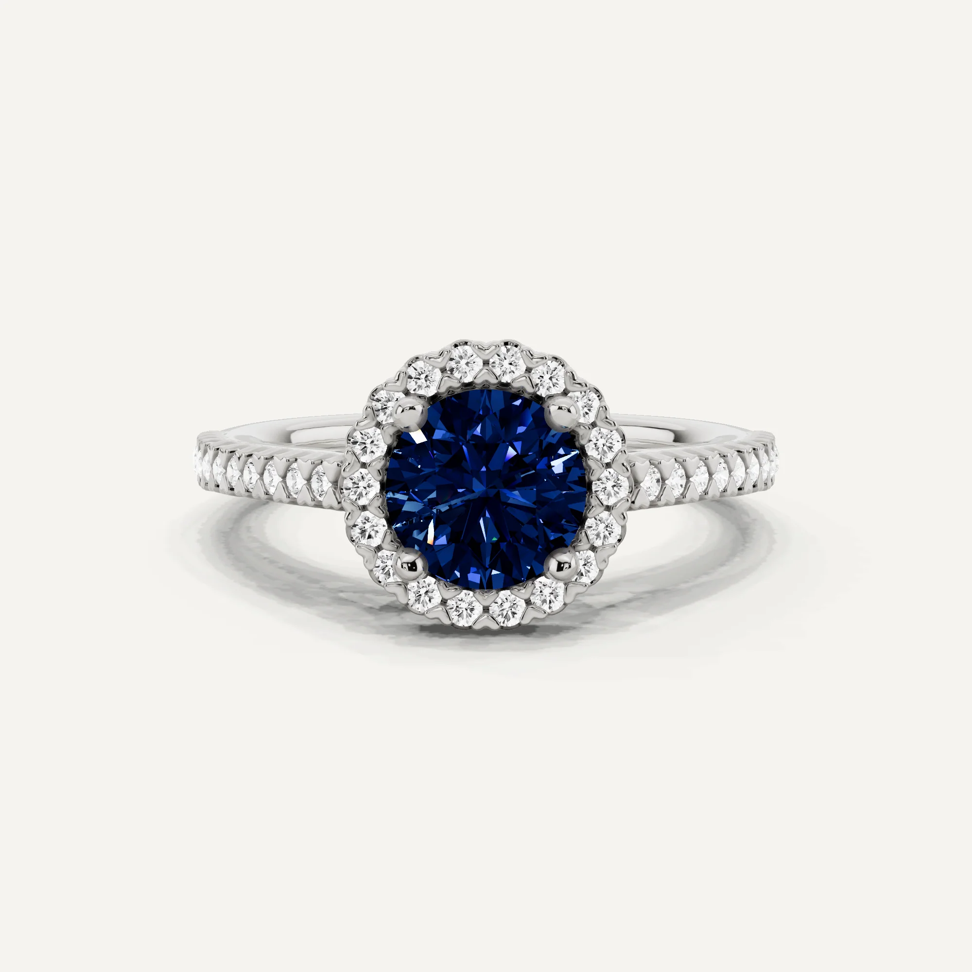 1 1/3 ctw Round Created Sapphire Pave Halo Engagement Ring