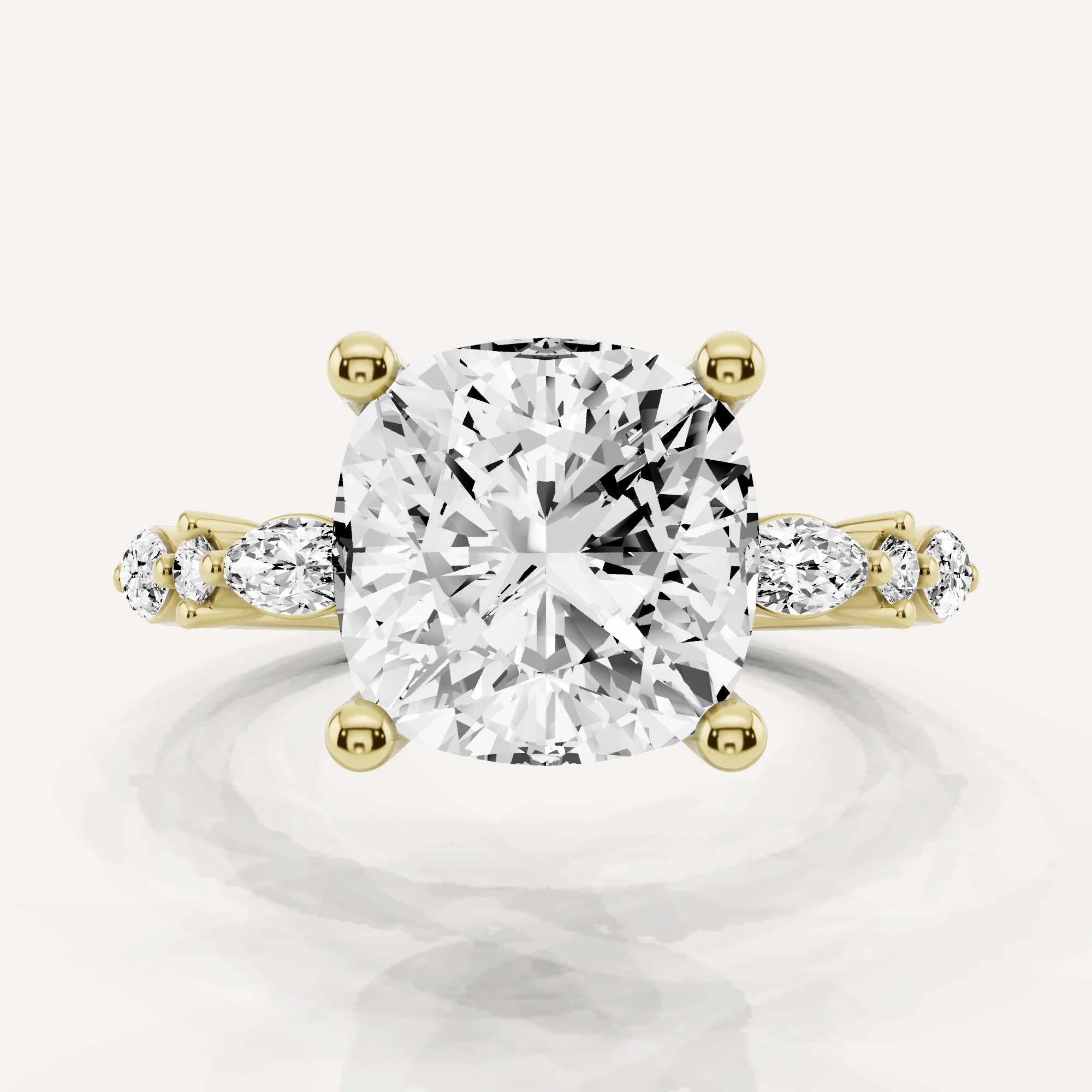 3 1/2 ctw Cushion Diamond Side Stone Engagement Ring